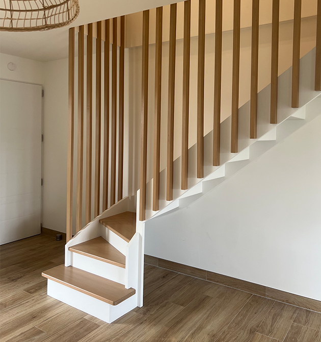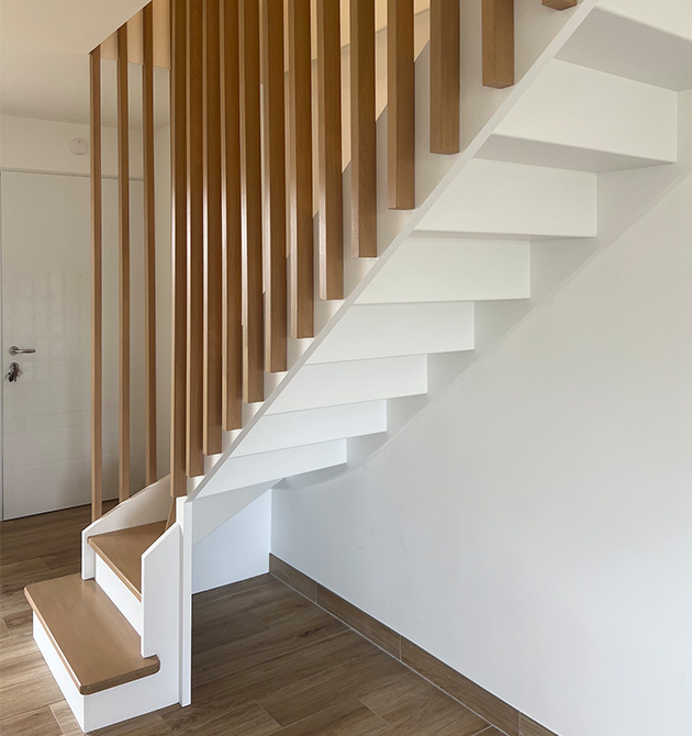 Structure (limon découpé façon crémaillère), blanche une touche moderne qui s’adapte aux intérieurs minimalistes.
