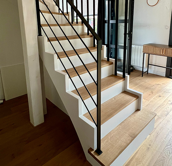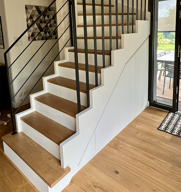 Il s’agit d’un escalier avec structure limon découpé façon crémaillère (LDFC).