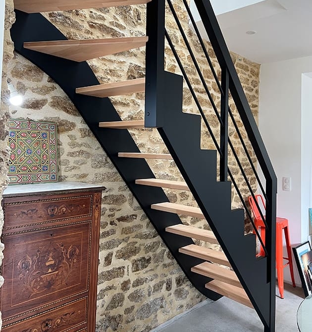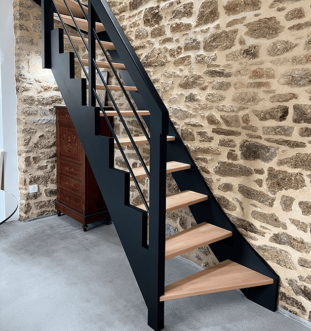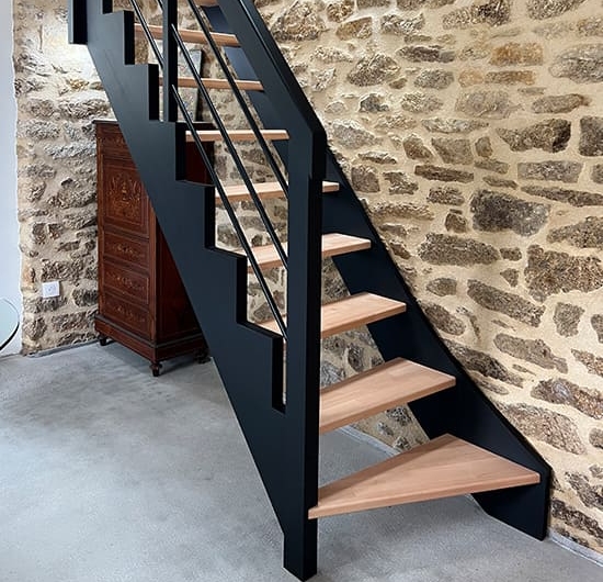 Escalier en Hêtre et Crémaillère Thermolaquée noire