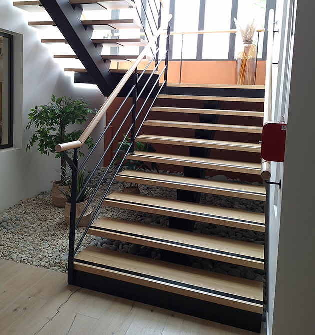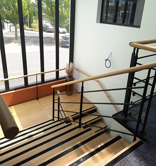 Focus sur cette réalisation ERP (Établissement recevant du Public). C’est aussi ça la force du Groupe Riaux, concevoir des escaliers adaptés aux espaces publics garantissant la sécurité de chacun.