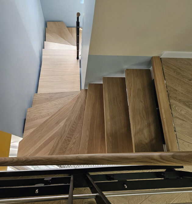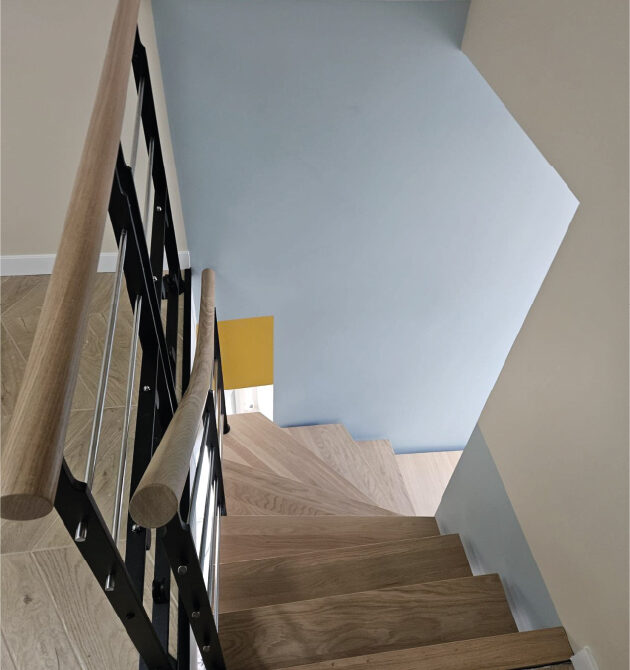 Combinant marches en chêne massif et garde-corps métallique à lisses inox, le modèle Levant séduit par sa légèreté visuelle et la finesse de ses finitions. Pensé pour s’intégrer dans un environnement aux teintes douces et naturelles, il respecte l’esprit du lieu tout en apportant une signature contemporaine discrète.