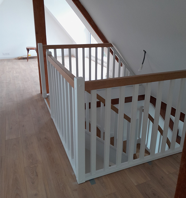 Cette réalisation met en avant notre modèle Origine, installé pour permettre un accès confortable et esthétique à de nouveaux combles aménagés. Le projet a également inclus l’ajout d’un garde-corps assorti sur l’escalier existant afin d’harmoniser l’ensemble de la montée.