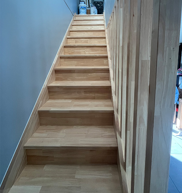 Le choix de l’Hévéa lamellé-collé abouté avec une finition vernis incolore pour apporte un style naturel et chaleureux.