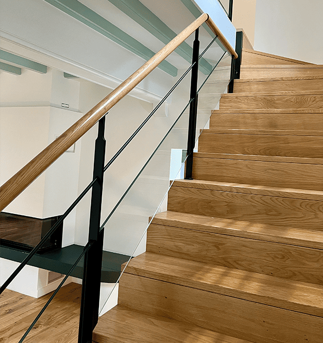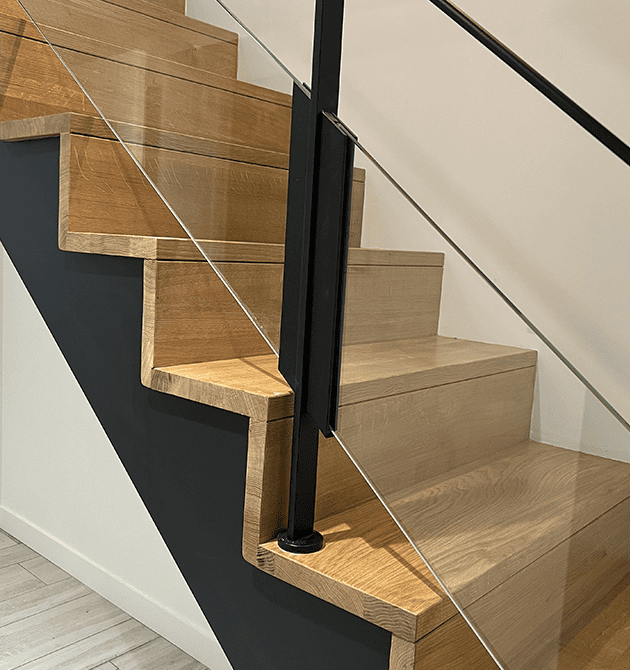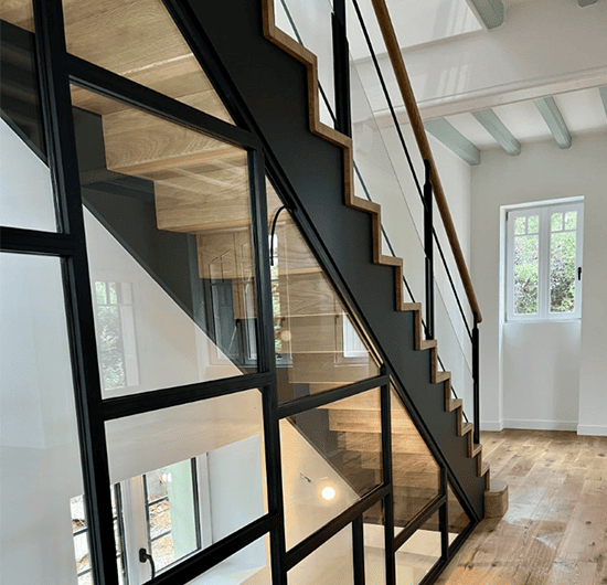 Triple Escaliers en Chêne massif avec Garde-corps en verre